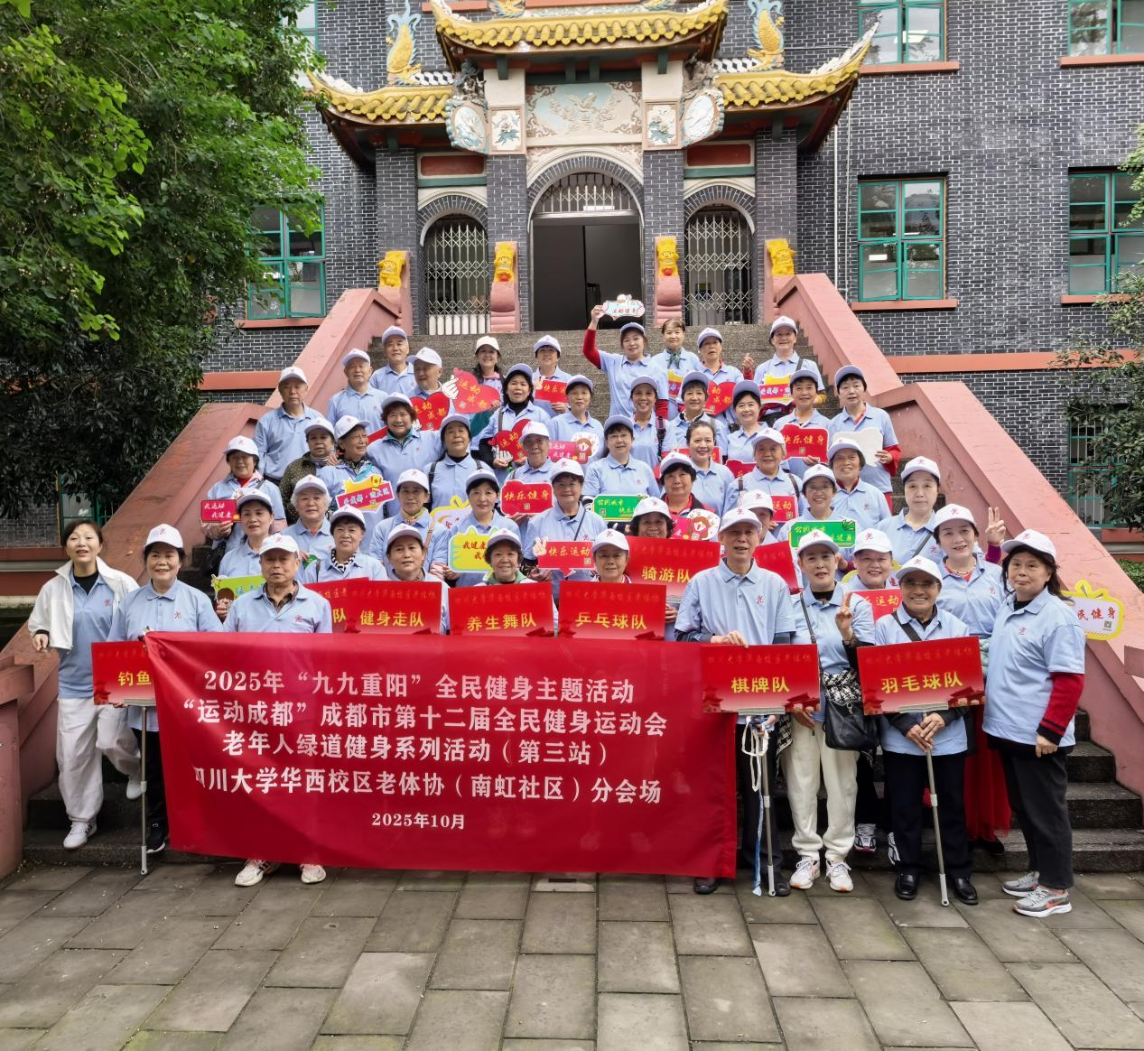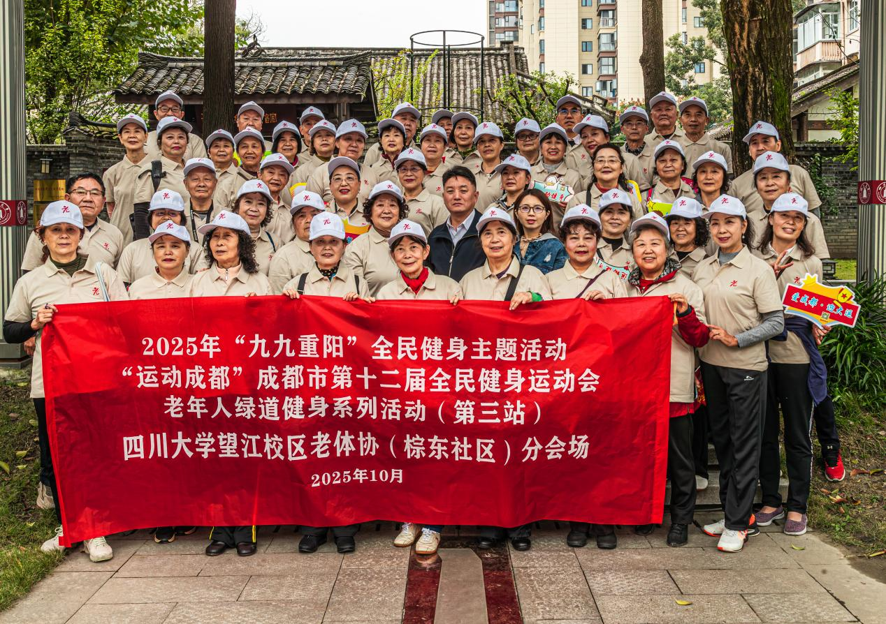 10月28日上午,2025年“九九重阳”全民健身主题活动暨“运动成都”成都市第十二届全民健身运动会老年人绿道健身系列活动(第三站),在我校望江校区、华西校区分会场同步举行,四川大学老年体协100余名老同志参加。