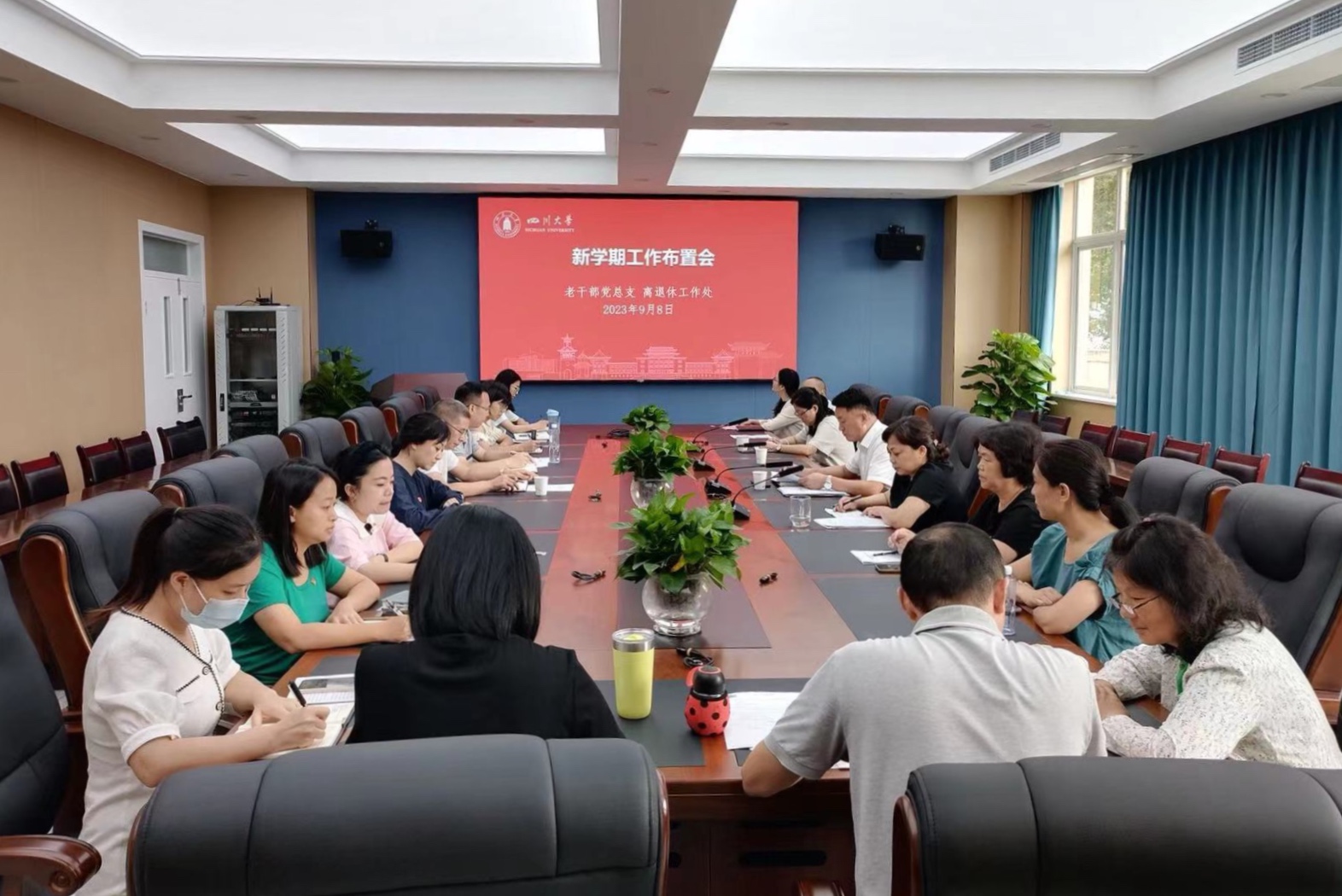 9月8日上午,老干部党总支、离退休工作处在文华活动中心309会议室召开2023年下半年新学期工作布置会,传达学校会议精神,安排部署单位新学期重点工作。领导班子全体成员、全体工作人员参加会议。会议由老干部党总支副书记、离退休工作处副处长罗梅主持。