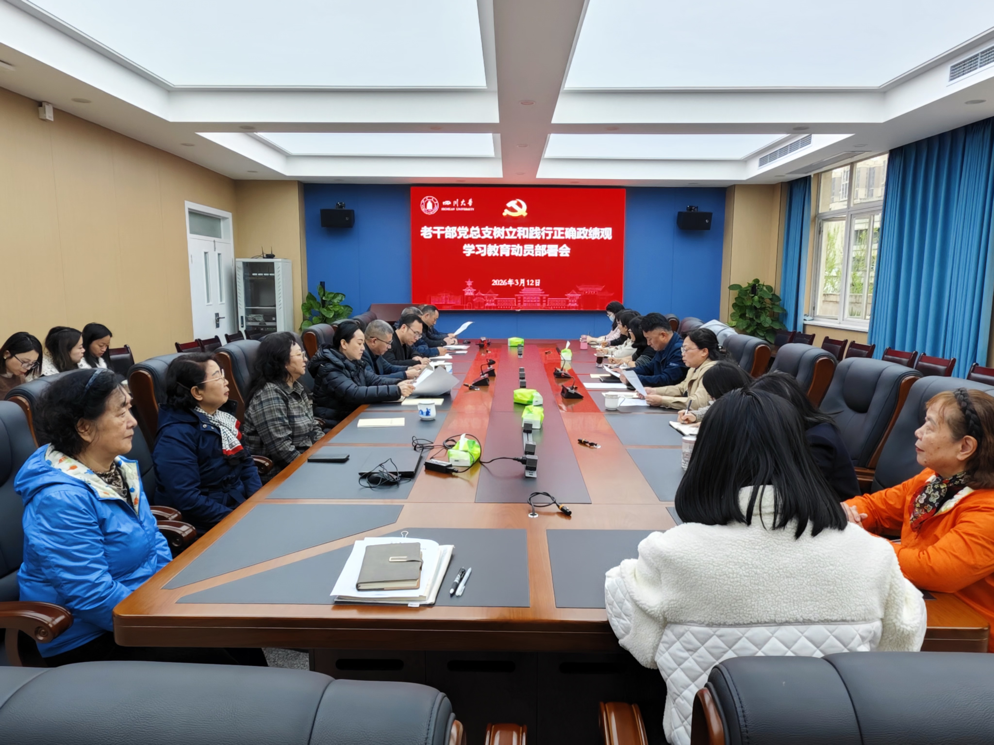 3月12日,老干部党总支树立和践行正确政绩观学习教育动员部署会在望江校区文华活动中心309会议室召开。老干部党总支书记、离退休工作处处长任泰山作动员讲话,对学习教育工作进行安排部署。部门领导班子成员、各党支部书记、全体在职党员及离退休党员代表参会,副书记、副处长罗梅主持会议。