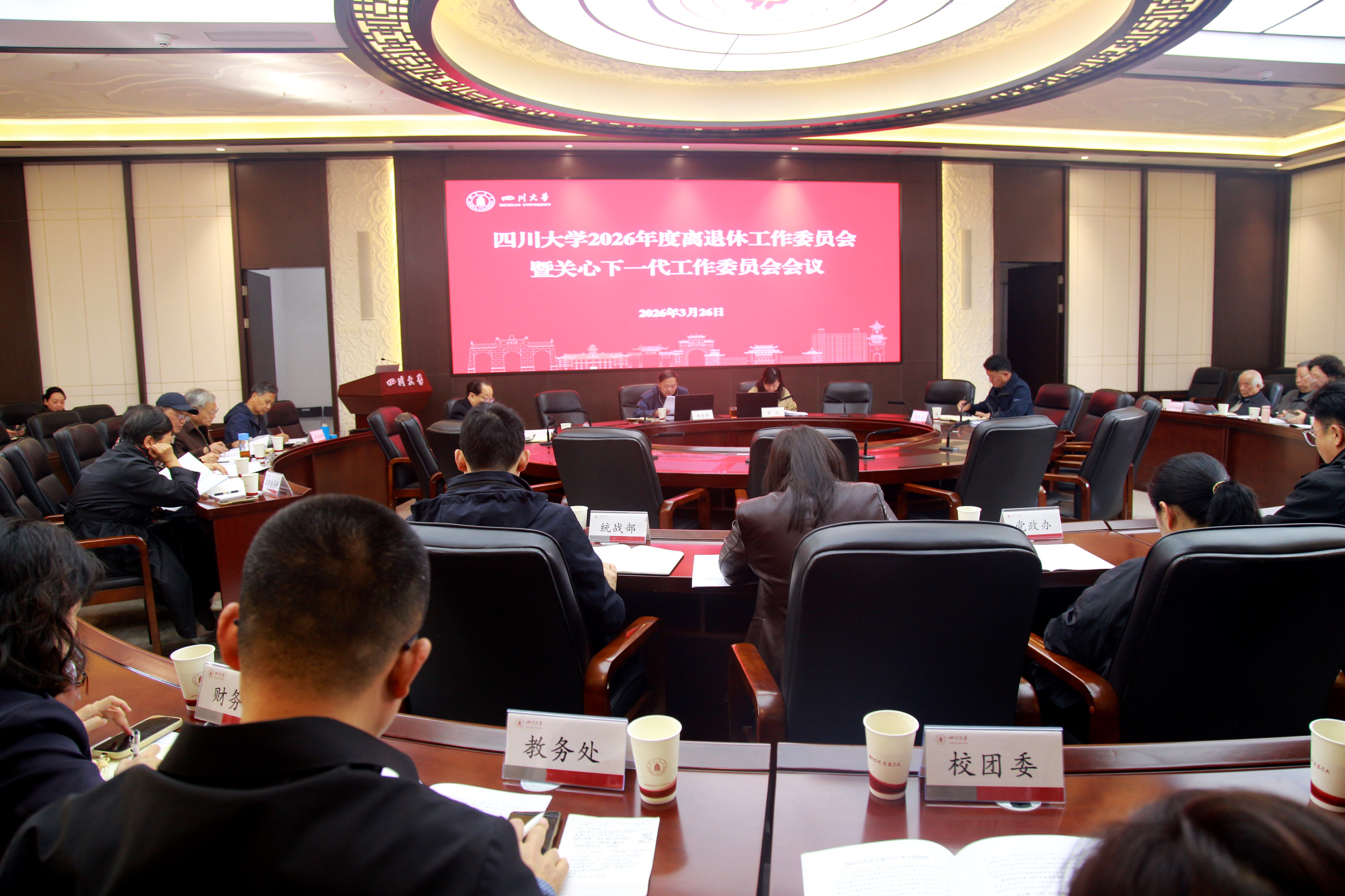 3月26日,学校在望江校区明德楼召开2026年度离退休工作委员会暨关心下一代工作委员会会议,校党委副书记黄园出席,离退休工作委员会和关工委工作委员会成员单位负责人、委员等参加。老干部党总支书记、离退休工作处处长、关工委副主任任泰山主持会议。