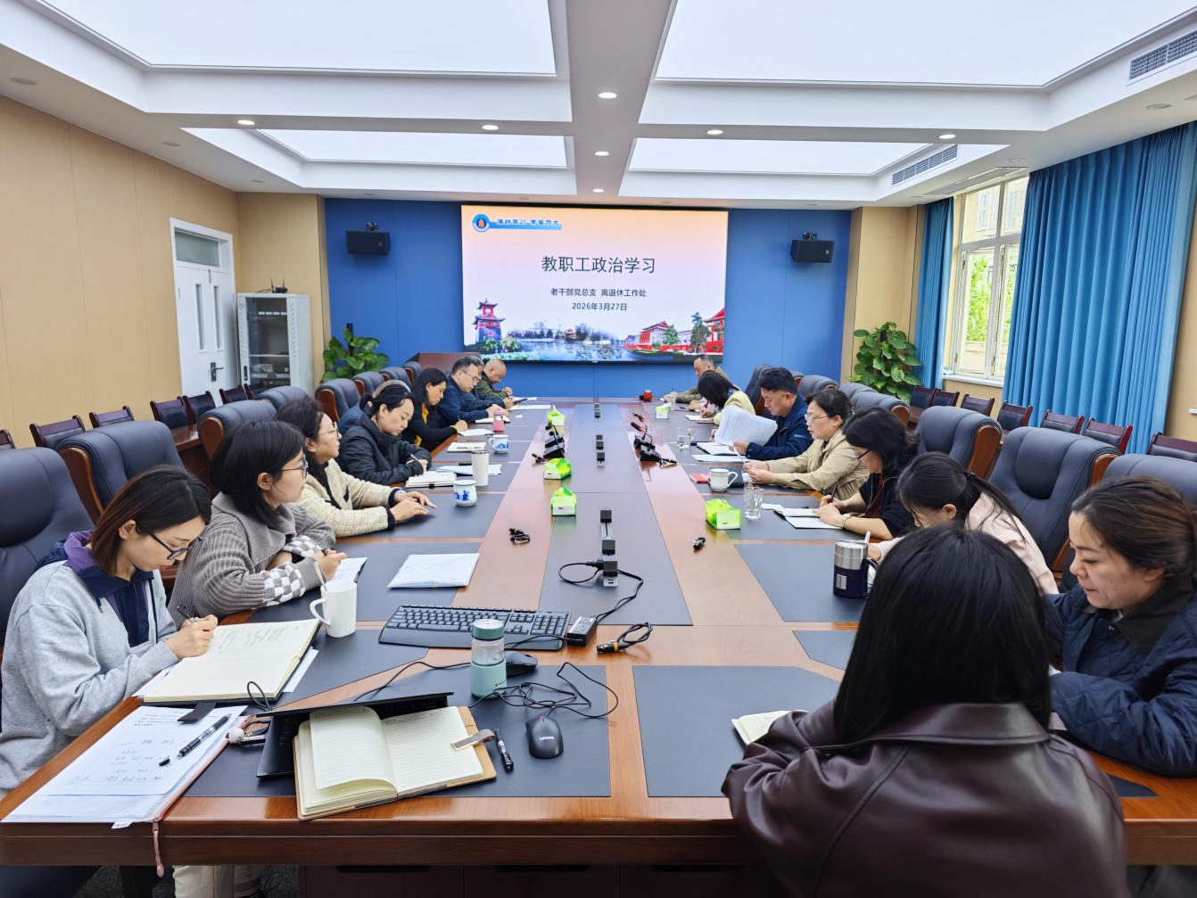 3月27日上午,老干部党总支、离退休工作处在望江校区文华活动中心组织开展教职工政治学习,老干部党总支副书记、离退休工作处副处长罗梅主持,单位全体在职教职工参加。