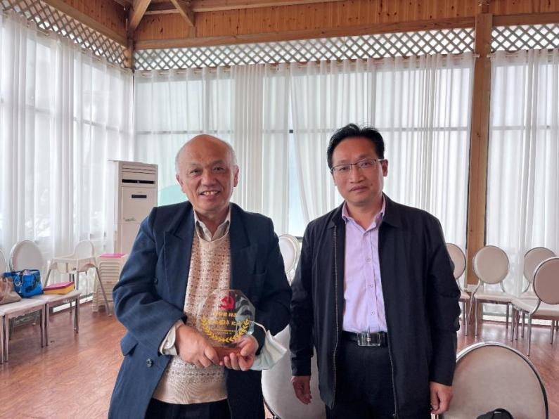 座谈会上,韩杰书记向党龄40年的退休教师黄存勋老师颁发了纪念奖牌。