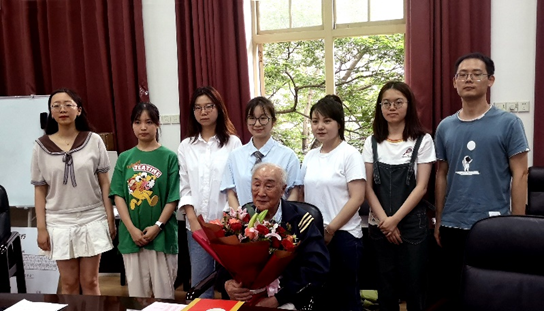 学院2020级硕士研究生谭梦煜同学发言,她首先代表学院学生对蓝庭剑教授和周慧晶老师表示深深的谢意和敬意。她深情地说到,两位老师秉着“传道授业解惑”的精神,在教学、生活中对学生淳淳教导、殷殷关切,用自己一生的所积所累化作帮助学子成才的动力,鼓励学子锐意进取。她表示将志存高远,脚踏实地,用实际行动去践行他们的理念和精神内涵。2017级本科生孙超然同学代表师生向蓝庭剑教授献上鲜花,表达感谢和敬意。