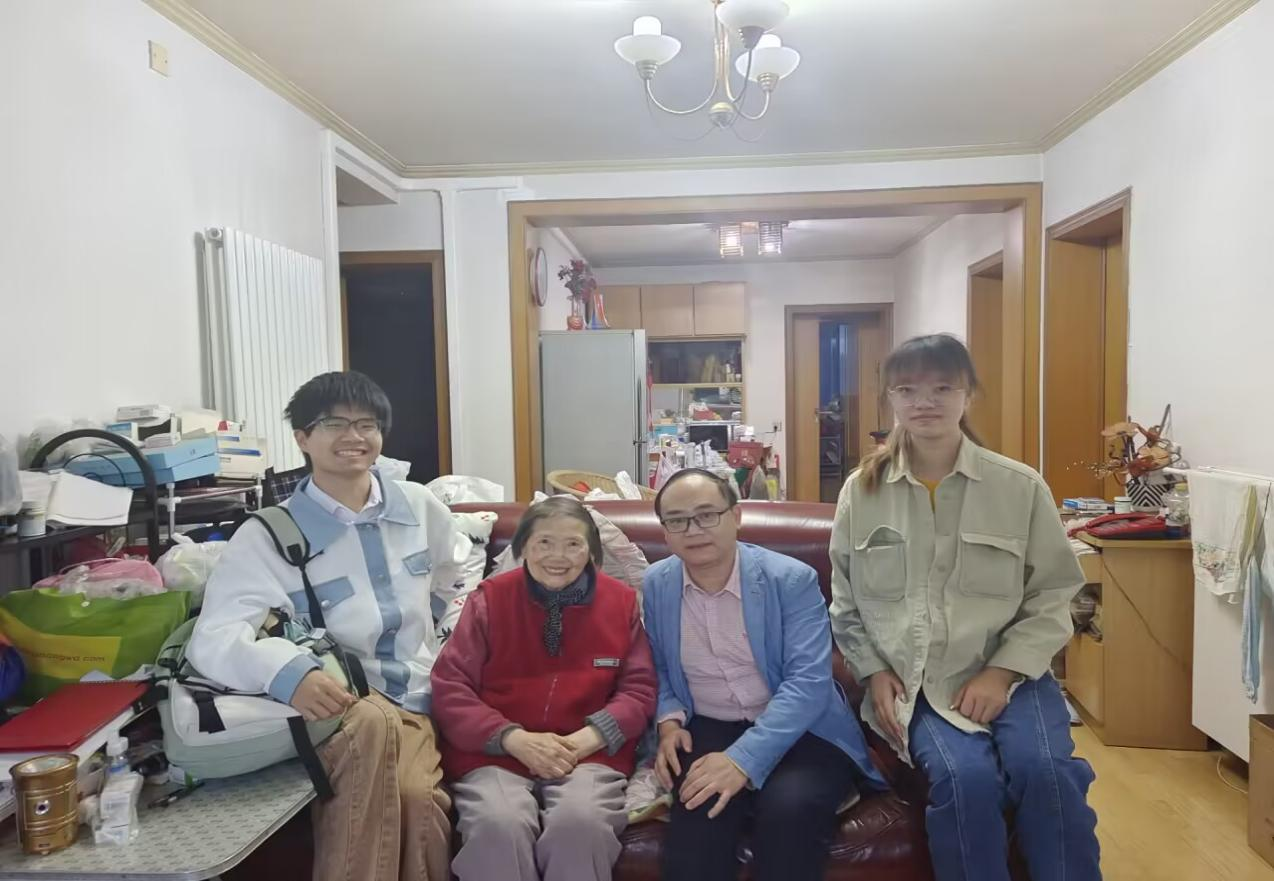 学院分团委书记、关工委委员何杰带领学生看望刘淑明老师,并送上重阳祝福。刘老师感谢学院的关心关怀,并表示将一如既往地关注和支持学院发展,祝愿学院取得更大的成绩。同学们也向刘老师汇报了自己的学习情况,刘老师教导学生要开阔视野,将理论学习与实践分析相结合,这样对数学学习的理解才能更为深刻。