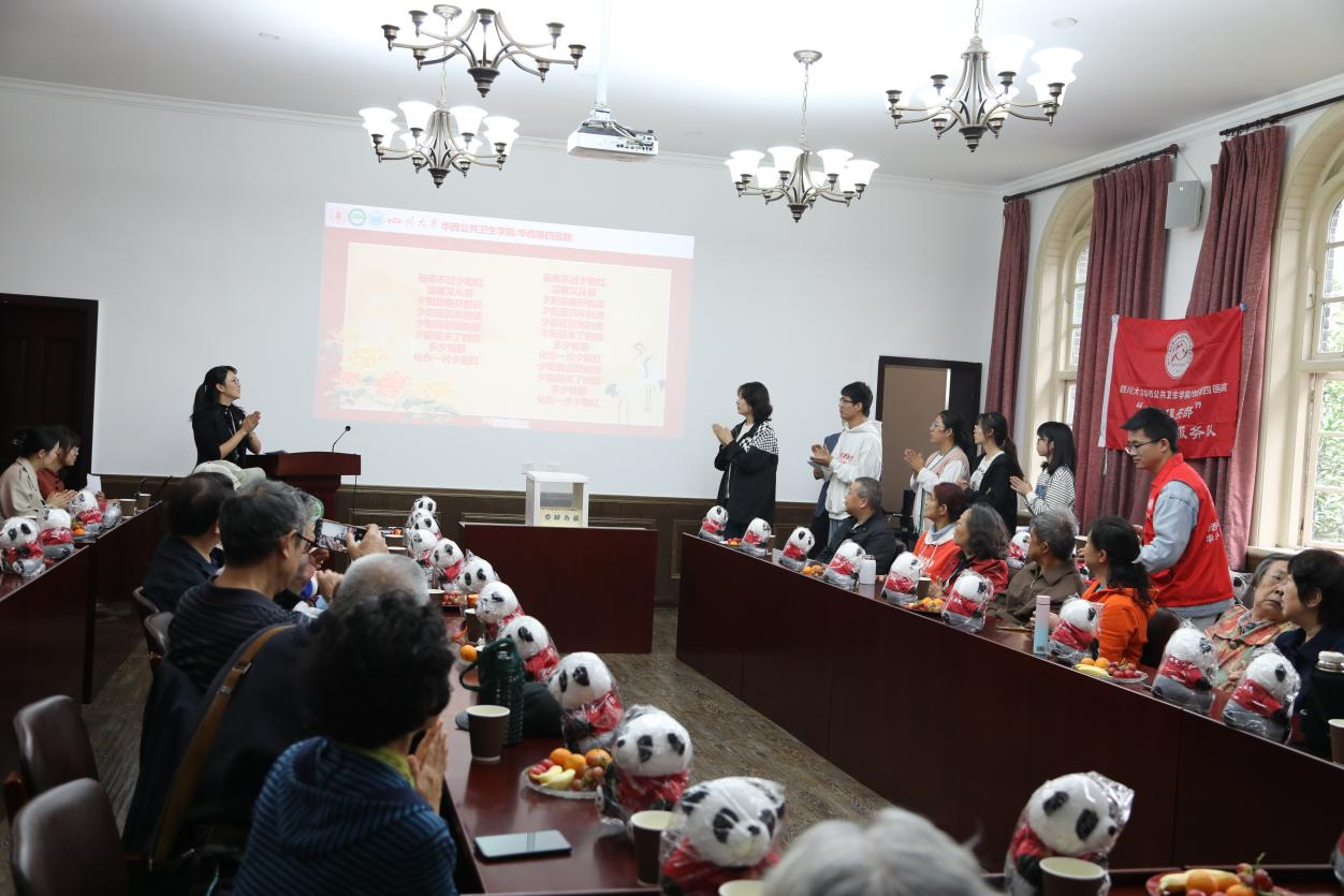 10月24日上午,在重阳佳节、全国第十一个“老年节”到来之际,华西公共卫生学院(华西第四医院)在志德堂举办以“健康老龄化,关系你我他”为主题的离退休教职工茶话会。院党委书记程永忠,党委副书记、纪委书记张琦,退休党支部、退休职工代表,学生党支部代表,相关职能部门负责人和工作人员,朝夕关爱志愿队的同学们参加了茶话会。