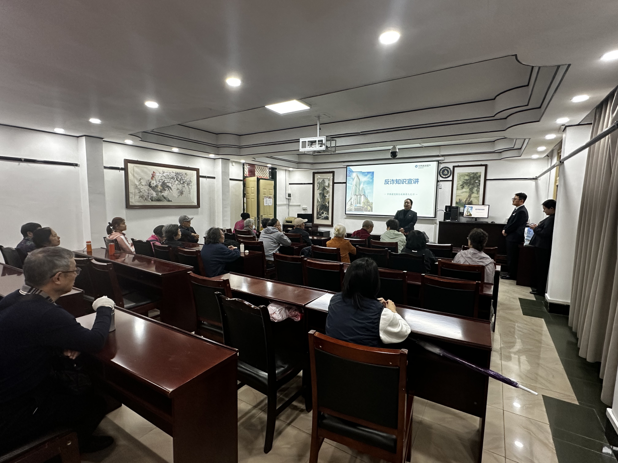 宣讲会上,建行工作人员围绕“电信诈骗的特点”“常见电信诈骗类型及典型案例”“防诈骗守则”三个方面展开系统讲解。工作人员首先分析了当前电信诈骗隐蔽性强、手段多样、针对性强等特点,帮助老同志们认清诈骗行为的总体态势。随后,结合真实案例,详细介绍了针对老年人群体高发的诈骗类型,深入剖析诈骗分子的惯用手法和话术套路。最后,工作人员重点讲解了“防诈骗守则”,提醒老同志们遇到可疑情况时及时与家人沟通或拨打报警电话,切实守好自己的“钱袋子”。在互动答疑环节,建行工作人员逐一耐心解答老同志们提出的问题,现场气氛热烈而融洽。